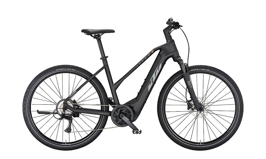 KTM MACINA CROSS 510 NŐI E-BIKE black matt (grey+orange) SH Acera 8 + BOSCH PT-CX5R4